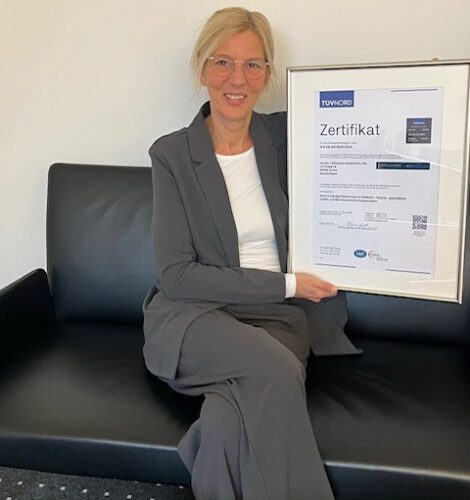Die Konformität wird einmal im Jahr durch unsere Auditorin Irina Schmidt anhand von internen Audits überprüft. Im Oktober 2024 stand die zweite Rezertifizierung zum Jahre 2025 an. Diese ließen wir durch die TÜV NORD CERT durchführen, die uns nach einer intensiven Prüfung die Konformität bestätigte.